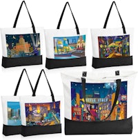 Left hand images are samples of the illustrations I have completed of the 7 districts of downtown San Diego. I have printed them onto various kinds of tote bags.